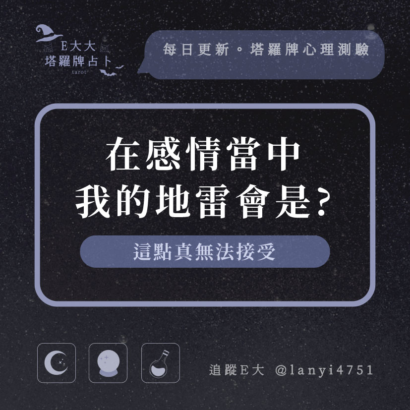 嗨~我是E大,歡迎你來到我的塔羅世界,每天會跟大家分享有趣的塔牌測驗,及塔羅知識喔!