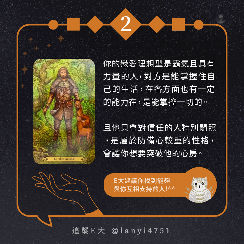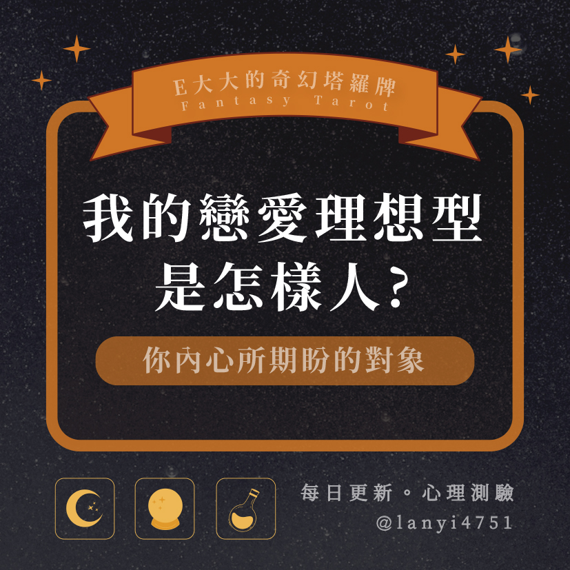 嗨~我是E大,歡迎你來到我的塔羅世界,每天會跟大家分享有趣的塔牌測驗,及塔羅知識喔!