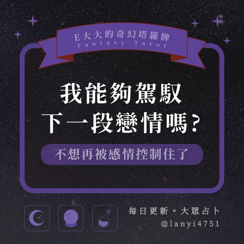我能夠駕馭下一段戀情嗎?不想再被感情控制住了|塔牌測驗|E大大