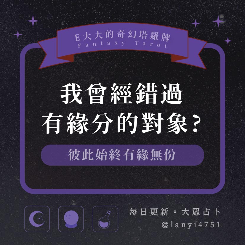 我曾經錯過有緣分的對象?彼此始終有緣無份|塔牌測驗|E大大