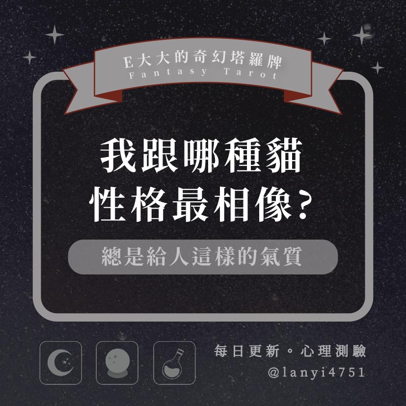 嗨~我是E大,歡迎你來到我的塔羅世界,每天會跟大家分享有趣的塔牌測驗,及塔羅知識喔!