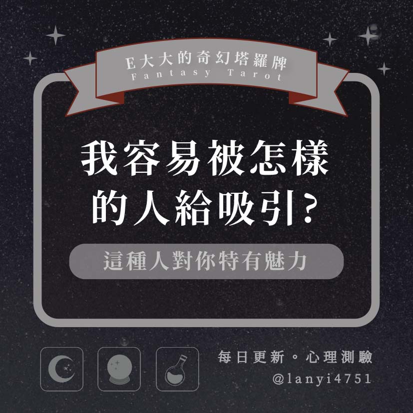 嗨~我是E大,歡迎你來到我的塔羅世界,每天會跟大家分享有趣的塔牌測驗及塔羅知識喔!
