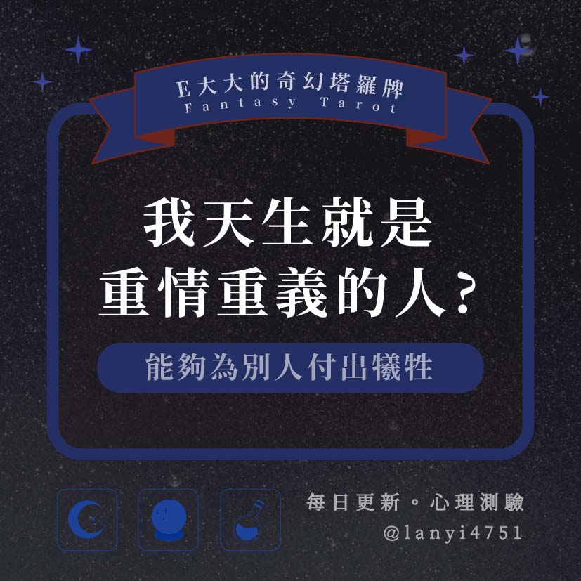嗨~我是E大,歡迎你來到我的塔羅世界,每天會跟大家分享有趣的塔牌測驗及塔羅知識喔!