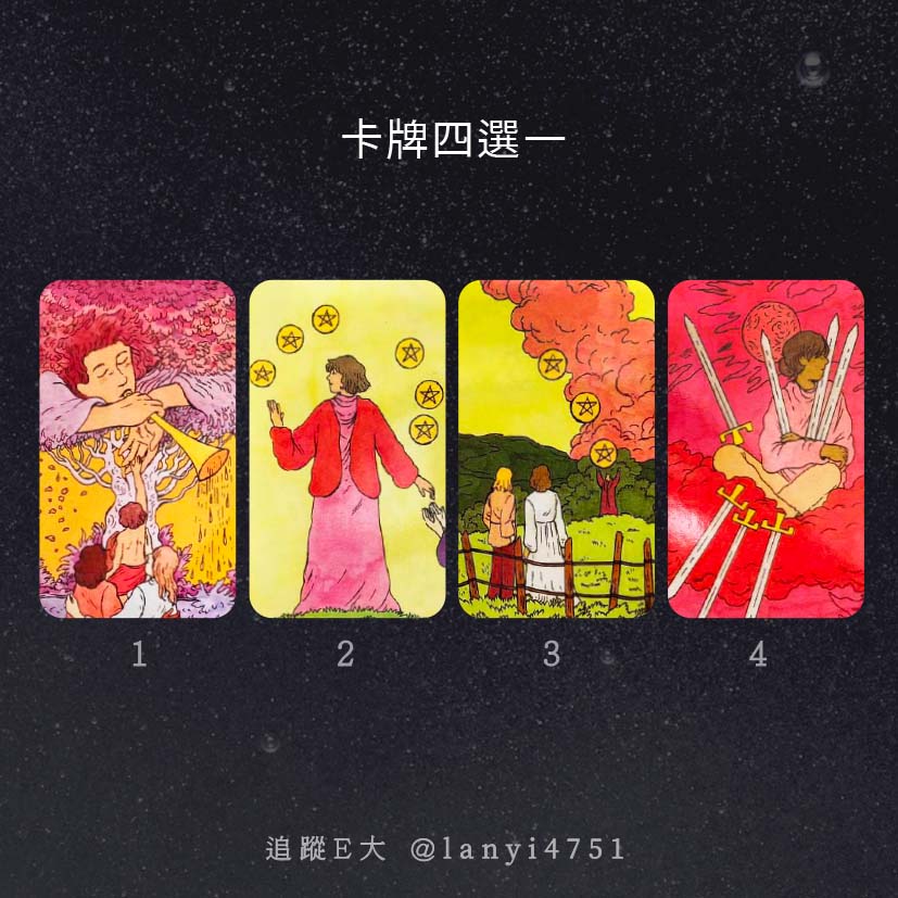 嗨~我是E大,歡迎你來到我的塔羅世界,每天會跟大家分享有趣的塔牌測驗及塔羅知識喔!