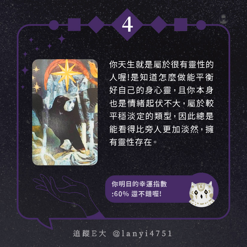 我天生屬於很有靈性的人?身心靈能達到平衡點|塔牌測驗|E大大 發表於2024 年 4 月 14 日2024 年 4 月 14 日 由E大大撰寫 嗨~我是E大,歡迎你來到我的塔羅世界,每天會跟大家分享有趣的塔牌測驗,及塔羅知識喔! E大社群 / 占卜預約👉 https://linktr.ee/lanyi4751 E大社群 / 占卜預約👉 https://linktr.ee/lanyi4751 分享此文: 按一下即可分享至 X(在新視窗中開啟) X 按一下以分享至 Facebook(在新視窗中開啟) Facebook 喜歡 正在載入... 相關