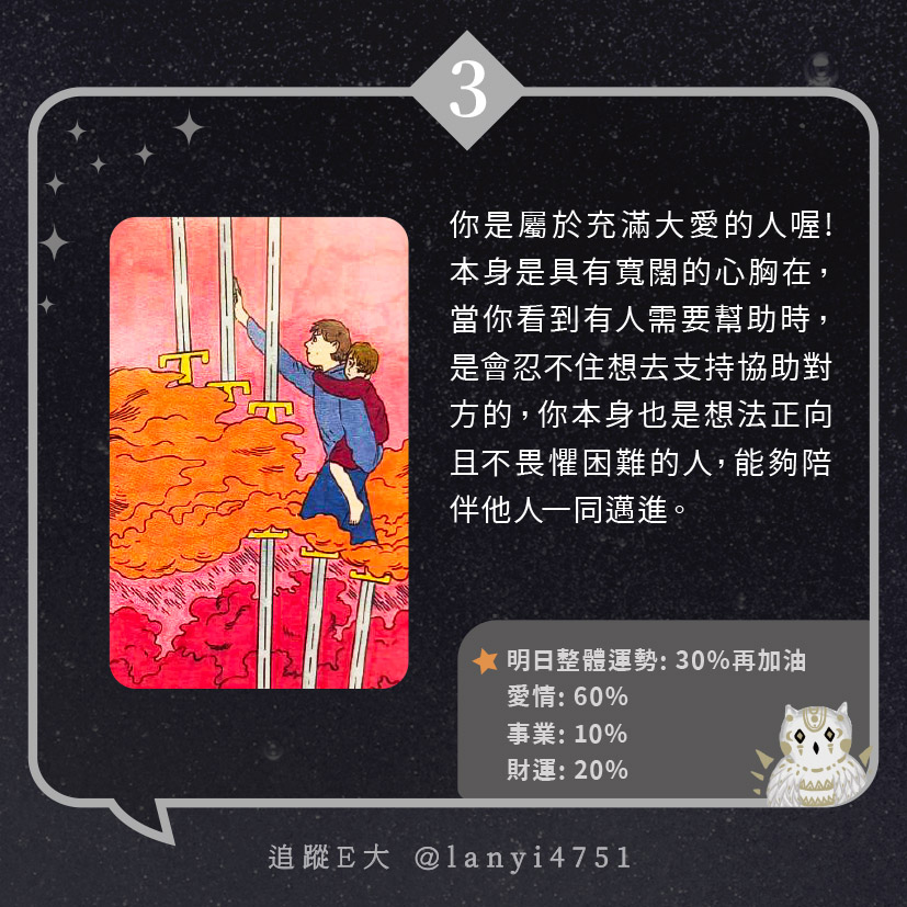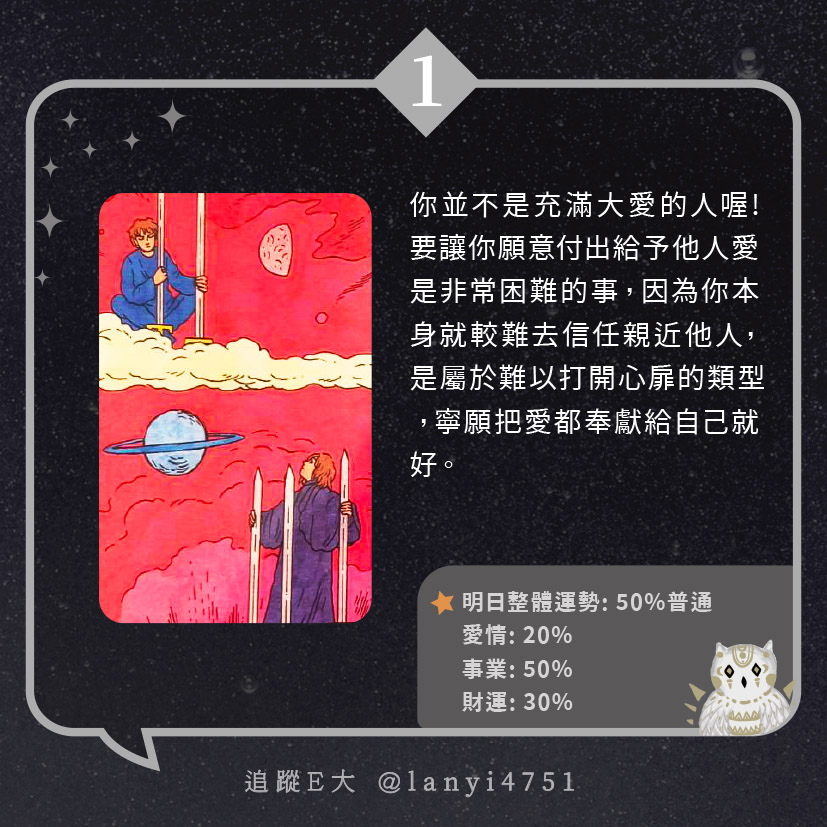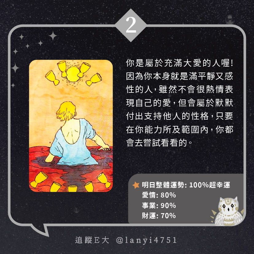 我本身是個充滿大愛的人?總是寬容對待這個世界|心理測驗|E大大 發表於2024 年 4 月 27 日 由E大大撰寫 嗨~我是E大,歡迎你來到我的塔羅世界,每天會跟大家分享有趣的塔牌測驗及塔羅知識喔! E大社群 / 占卜預約👉 https://linktr.ee/lanyi4751 E大社群 / 占卜預約👉 https://linktr.ee/lanyi4751 分享此文: 分享到 X(在新視窗中開啟) X 分享到 Facebook(在新視窗中開啟) Facebook 喜歡 正在載入... 相關