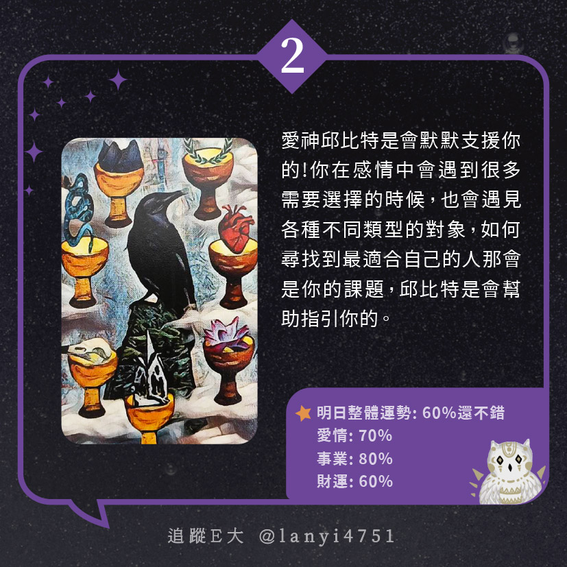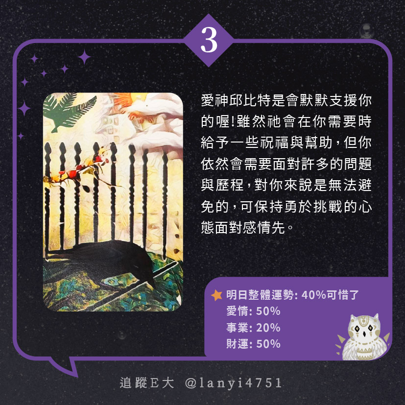 愛神邱比特會默默支援我?為你的愛情增加助力|塔牌測驗|E大大 發表於2024 年 5 月 2 日 由E大大撰寫 嗨~我是E大,歡迎你來到我的塔羅世界,每天會跟大家分享有趣的塔牌測驗,及塔羅知識喔! E大社群 / 占卜預約👉 https://linktr.ee/lanyi4751 E大社群 / 占卜預約👉 https://linktr.ee/lanyi4751 分享此文: 分享到 X(在新視窗中開啟) X 分享到 Facebook(在新視窗中開啟) Facebook 喜歡 正在載入... 相關