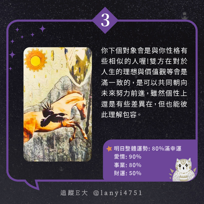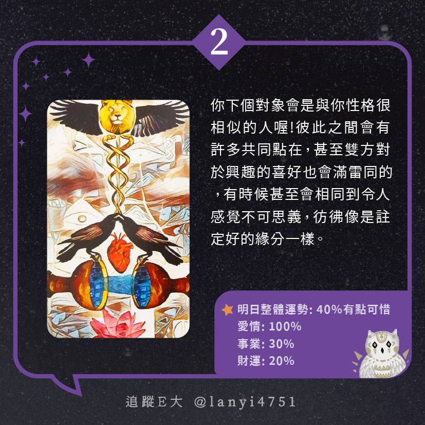下個對象會與我性格相似?總能互相懂彼此的點|塔牌測驗|E大大 發表於2024 年 5 月 4 日 由E大大撰寫 嗨~我是E大,歡迎你來到我的塔羅世界,每天會跟大家分享有趣的塔牌測驗,及塔羅知識喔! E大社群 / 占卜預約👉 https://linktr.ee/lanyi4751 E大社群 / 占卜預約👉 https://linktr.ee/lanyi4751 分享此文: 分享到 X(在新視窗中開啟) X 分享到 Facebook(在新視窗中開啟) Facebook 喜歡 正在載入... 相關