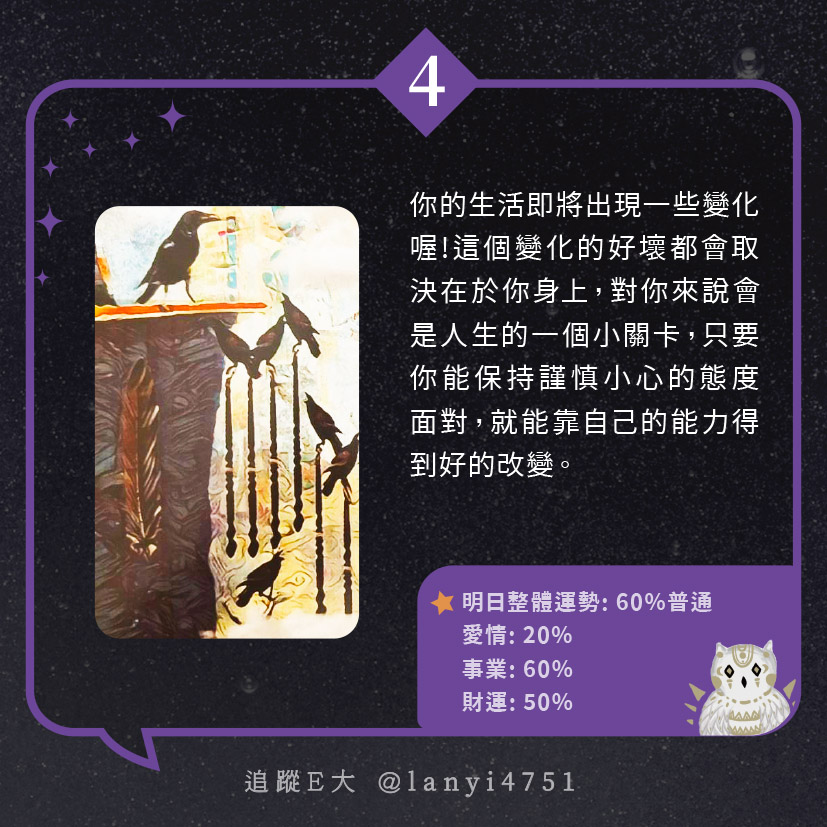 我的生活即將出現嶄新變化? 新的機緣即將到來|塔牌測驗|E大大 發表於2024 年 5 月 10 日 由E大大撰寫 嗨~我是E大,歡迎你來到我的塔羅世界,每天會跟大家分享有趣的塔牌測驗,及塔羅知識喔! E大社群 / 占卜預約👉 https://linktr.ee/lanyi4751 E大社群 / 占卜預約👉 https://linktr.ee/lanyi4751 分享此文: 分享到 X(在新視窗中開啟) X 分享到 Facebook(在新視窗中開啟) Facebook 喜歡 正在載入... 相關
