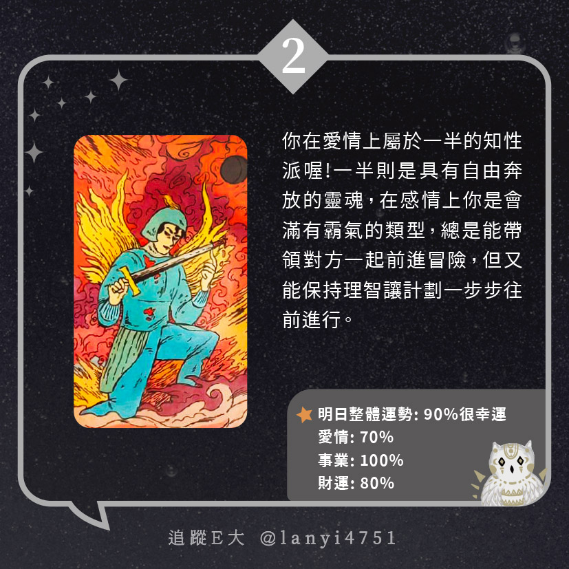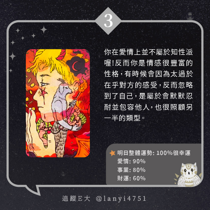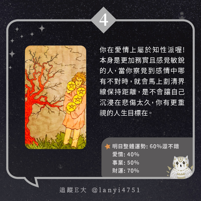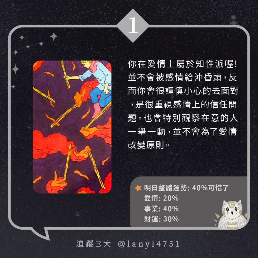 我愛情上屬於知性派?總是很理智面對感情|心理測驗|E大大 發表於2024 年 5 月 21 日 由E大大撰寫 嗨~我是E大,歡迎你來到我的塔羅世界,每天會跟大家分享有趣的塔牌測驗及塔羅知識喔! E大社群 / 占卜預約👉 https://linktr.ee/lanyi4751 E大社群 / 占卜預約👉 https://linktr.ee/lanyi4751 分享此文: 分享到 X(在新視窗中開啟) X 分享到 Facebook(在新視窗中開啟) Facebook 喜歡 正在載入... 相關
