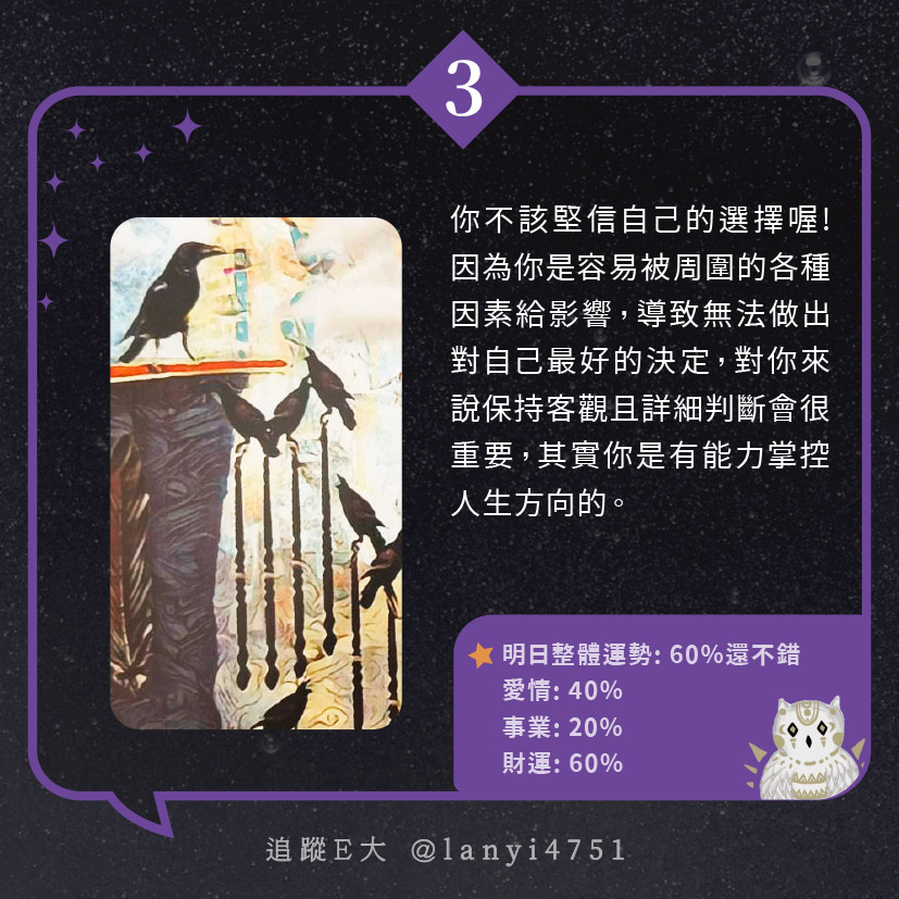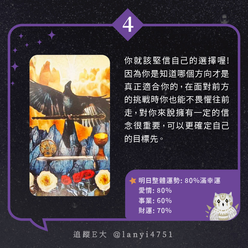 我該堅定自己的選擇?不要懷疑繼續前進著|塔牌測驗|E大大 發表於2024 年 7 月 4 日 由E大大撰寫 嗨~我是E大,歡迎你來到我的塔羅世界,每天會跟大家分享有趣的塔牌測驗,及塔羅知識喔! E大社群 / 占卜預約👉 https://linktr.ee/lanyi4751 E大社群 / 占卜預約👉 https://linktr.ee/lanyi4751 分享此文: 分享到 X(在新視窗中開啟) X 分享到 Facebook(在新視窗中開啟) Facebook 喜歡 正在載入... 相關