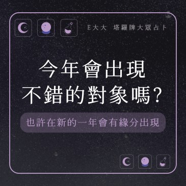 也許在新的一年會有緣分出現,測測看好了! 哈囉大家好嗎?我是E大大唷~直言直語的塔羅牌占卜師!偶爾也會分享多年 … More 【今年會出現不錯的對象嗎?】塔牌測驗💜