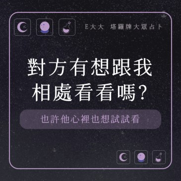 也許他心裡也想試試看…測測看好了! 哈囉大家好嗎?我是E大大唷~直言直語的塔羅牌占卜師!偶爾也會分享多年來累積 … More 【對方有想跟我相處看看嗎?】塔牌測驗💜