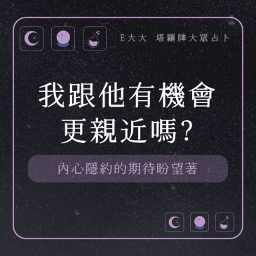 嗨~我是E大,歡迎你來到我的塔羅世界,創立這個平台主要是為了讓更多人對塔羅牌產生興趣,並且能透過牌卡找到自己人 … More 我跟他有機會更親近嗎?內心隱約的期待盼望著,測測看好了! |塔牌測驗💜