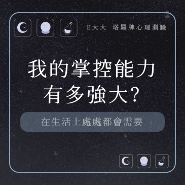 嗨~我是E大,歡迎你來到我的塔羅世界,創立這個平台主要是為了讓更多人對塔羅牌產生興趣,並且能透過牌卡找到自己人 … More 我的掌控能力有多強大?在生活上處處都會需要,測測看好了! |心理測驗💜