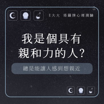 嗨~我是E大,歡迎你來到我的塔羅世界,創立這個平台主要是為了讓更多人對塔羅牌產生興趣,並且能透過牌卡找到自己人 … More 我是個具有親和力的人?總是能讓人感到想親近,測測看好了! |心理測驗💜