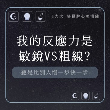 嗨~我是E大,歡迎你來到我的塔羅世界,創立這個平台主要是為了讓更多人對塔羅牌產生興趣,並且能透過牌卡找到自己人 … More 我的反應力是敏銳VS粗線?總是比別人慢一步快一步,測測看好了! |心理測驗💜