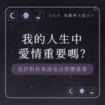 嗨~我是E大,歡迎你來到我的塔羅世界,創立這個平台主要是為了讓更多人對塔羅牌產生興趣,並且能透過牌卡找到自己人 … More 我的人生中愛情重要嗎?也許對你來說並沒那麼重要,測測看好了! |塔牌測驗💜