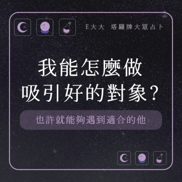 嗨~我是E大,歡迎你來到我的塔羅世界,創立這個平台主要是為了讓更多人對塔羅牌產生興趣,並且能透過牌卡找到自己人 … More 我能怎麼做吸引好的對象?也許就能夠遇到適合的他,測測看好了! |塔牌測驗💜