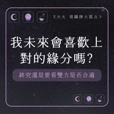 嗨~我是E大,歡迎你來到我的塔羅世界,創立這個平台主要是為了讓更多人對塔羅牌產生興趣,並且能透過牌卡找到自己人 … More 我未來會喜歡上對的緣分嗎?終究還是要看雙方是否合適,測測看好了! |塔牌測驗💜