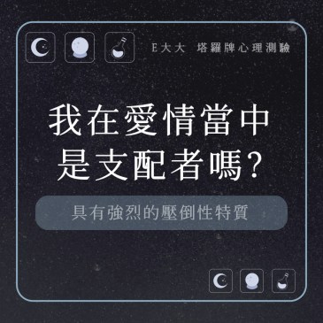 嗨~我是E大,歡迎你來到我的塔羅世界,創立這個平台主要是為了讓更多人對塔羅牌產生興趣,並且能透過牌卡找到自己人 … More 我在愛情當中是支配者嗎?具有強烈的壓倒性特質,測測看好了! |心理測驗💜