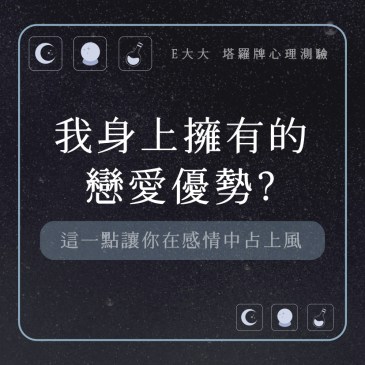 嗨~我是E大,歡迎你來到我的塔羅世界,創立這個平台主要是為了讓更多人對塔羅牌產生興趣,並且能透過牌卡找到自己人 … More 我身上擁有的戀愛優勢?這一點讓你在感情中占上風,測測看好了! |心理測驗💜