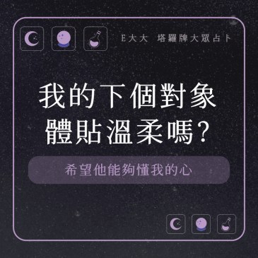 嗨~我是E大,歡迎你來到我的塔羅世界,創立這個平台主要是為了讓更多人對塔羅牌產生興趣,並且能透過牌卡找到自己人 … More 我的下個對象體貼溫柔嗎?希望他能夠懂我的心,測測看好了! |塔牌測驗💜