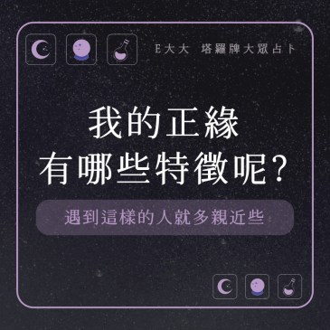 嗨~我是E大,歡迎你來到我的塔羅世界,創立這個平台主要是為了讓更多人對塔羅牌產生興趣,並且能透過牌卡找到自己人 … More 我的正緣有哪些特徵呢?遇到這樣的人就多親近些,測測看好了! |塔牌測驗💜
