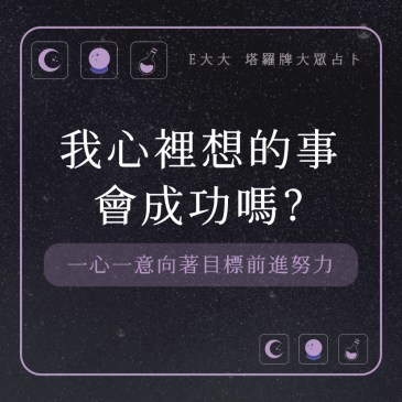 嗨~我是E大,歡迎你來到我的塔羅世界,創立這個平台主要是為了讓更多人對塔羅牌產生興趣,並且能透過牌卡找到自己人 … More 我心裡想的事會成功嗎?一心一意向著目標前進努力,測測看好了! |塔牌測驗💜