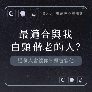 嗨~我是E大,歡迎你來到我的塔羅世界,創立這個平台主要是為了讓更多人對塔羅牌產生興趣,並且能透過牌卡找到自己人 … More 最適合與我白頭偕老的人?這個人會讓你甘願包容他,測測看好了! |心理測驗💜